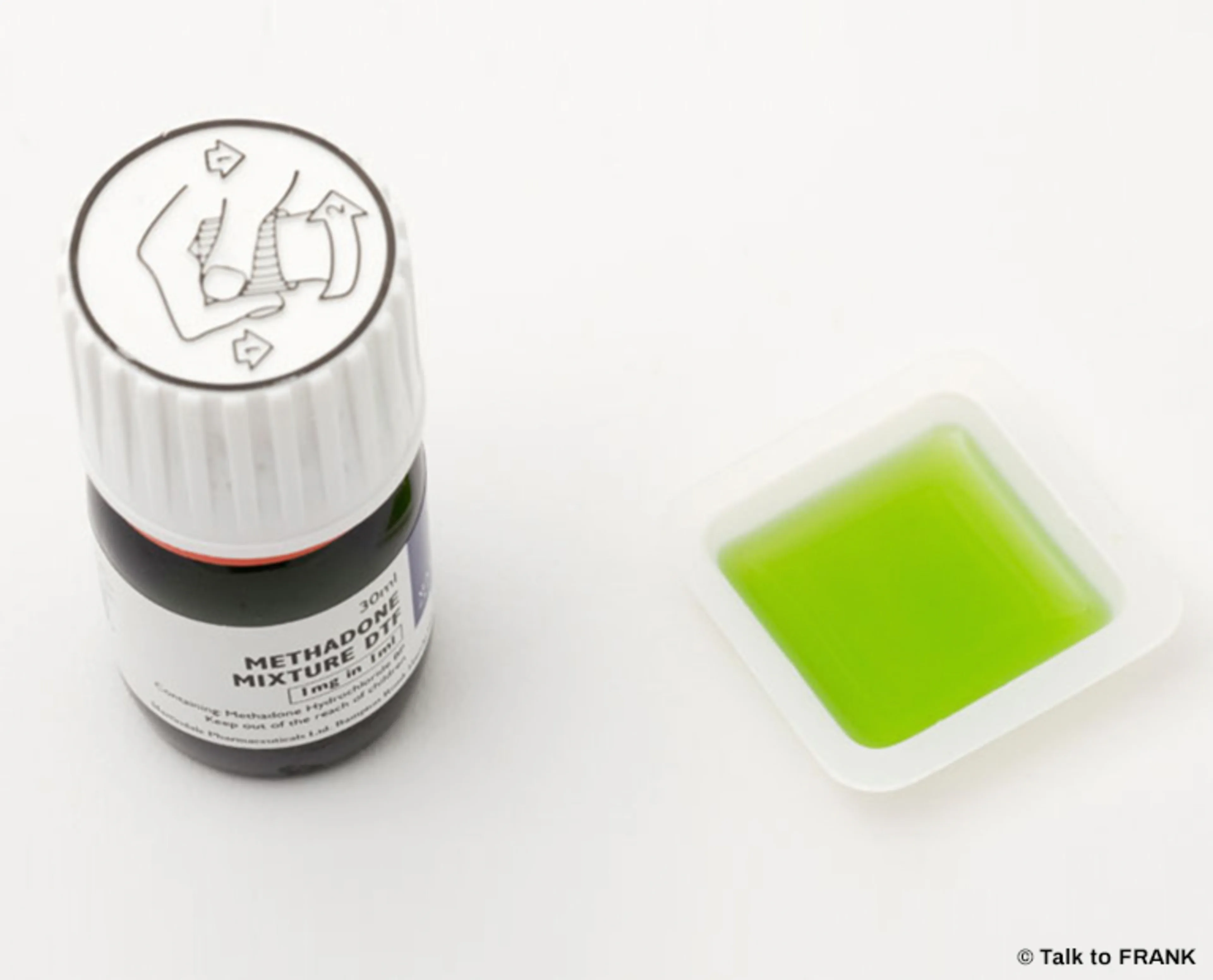 Methadone prescribed to people trying to come off street heroin is usually a green liquid that is swallowed, but it can come in tablet or injectable form.